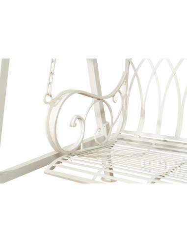 Tweezits schommel in smeedijzer met antiek witte afwerking L198xPR100xH220 cm