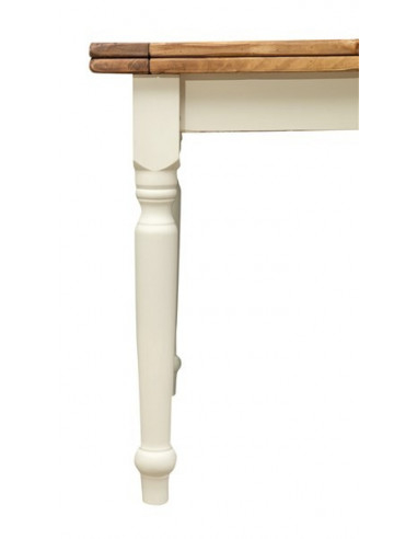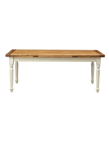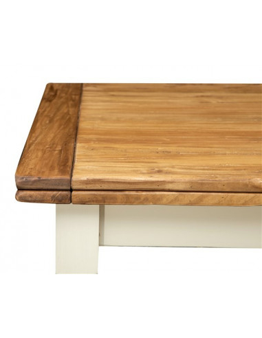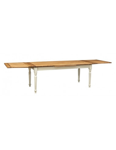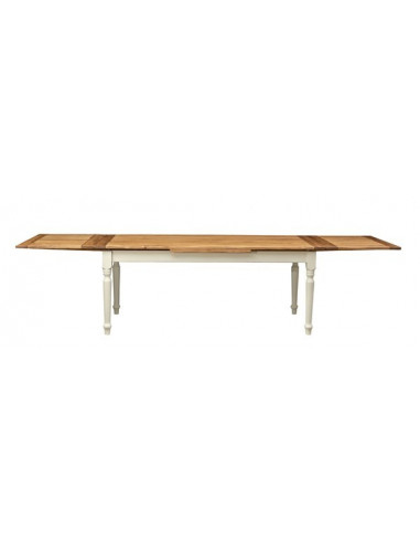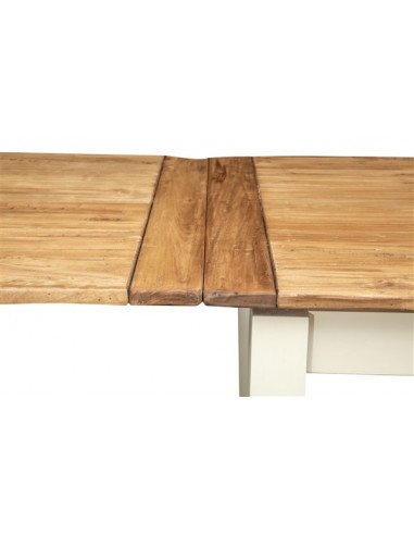 Landelijke uitschuifbare tafel in massief lindenhout, verouderde witte structuur, natuurlijk blad L200xPR90xH80 cm. Gemaakt in I