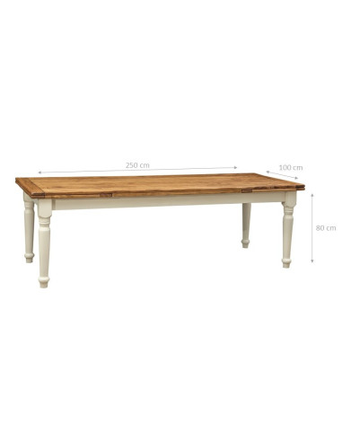 Rechthoekige tafel L250xPR100xH80 cm in massief lindehout, uitschuifbaar tot 315 of 380 cm dankzij de twee praktische verlengstukken van elk 65 cm. Ideaal om elke kamer af te maken met een vleugje landelijke charme, het wordt gegarandeerd in stevigheid en kwaliteit door het onmiskenbare en nauwgezette vakmanschap Made in Italy.
