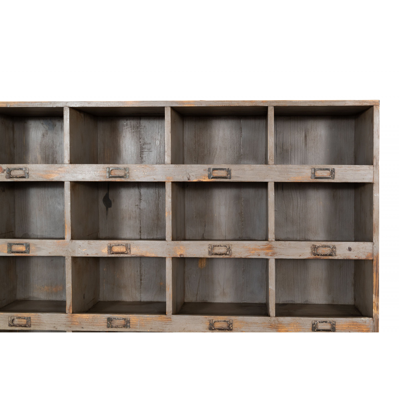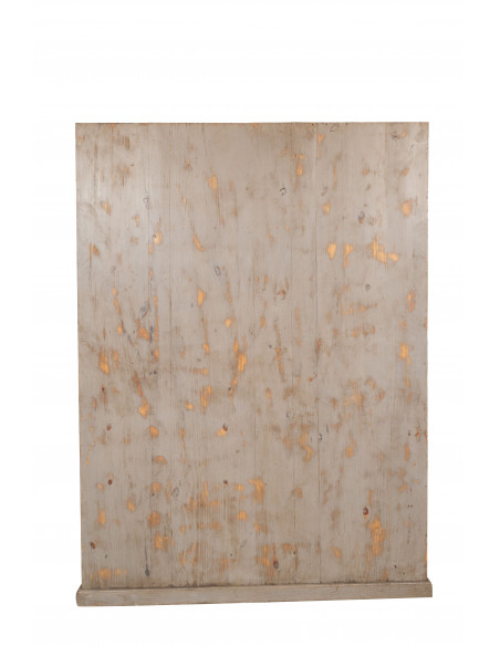 Dit imposante en ruime meubel bestaat uit drie blokken met totale afmetingen L150xPR34x205 cm, is gemaakt van massief eikenhout en heeft maar liefst 12 dubbele glazen deuren. Dankzij de vele planken kan het worden gebruikt als boekenkast of vitrinekast en geeft het elke ruimte een vleugje landelijke stijl.