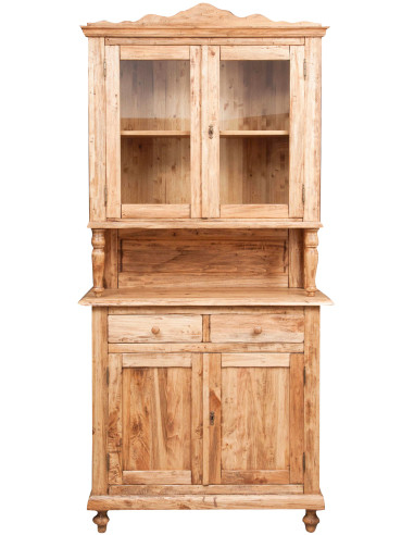 Vitrinekast in massief lindehout, natuurlijke afwerking L107xPR43xH238 cm. Gemaakt in Italië
