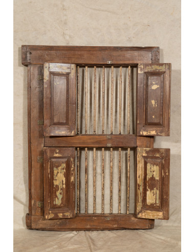 Drzwi z kratą okienną z litego drewna i starego żelaza z ramą wewnętrzną lub zewnętrzną