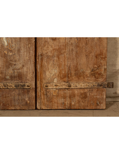 Antyczne drzwi/brama z litego drewna tekowego o wymiarach 110 cm długości, 11 cm głębokości i 190 cm wysokości. Te drzwi pochodzą z rozbiórki i renowacji ważnych starych budynków. Precyzyjnie odrestaurowane i przystosowane do użytku na zewnątrz, każde drzwi są prawdziwym i unikalnym antykiem. Wszystkie wymiary odnoszą się do maksymalnych całkowitych wymiarów artykułu.