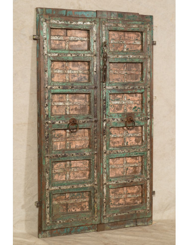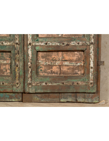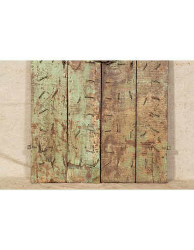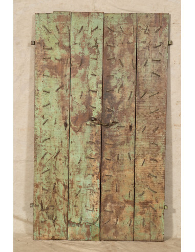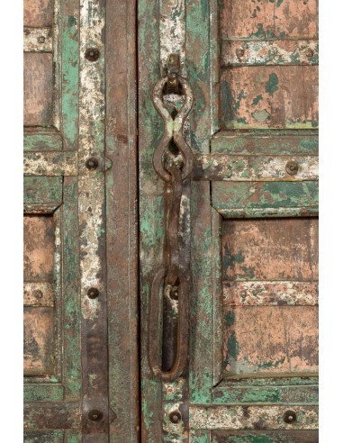 Antyczne drzwi/brama z litego drewna tekowego o wymiarach 102 cm długości, 18 cm głębokości i 195 cm wysokości. Te drzwi pochodzą z rozbiórki i renowacji ważnych starych budynków. Precyzyjnie odrestaurowane i przystosowane do użytku zewnętrznego, każde drzwi są prawdziwym i unikalnym antykiem. Wszystkie wymiary odnoszą się do maksymalnych całkowitych wymiarów artykułu.
