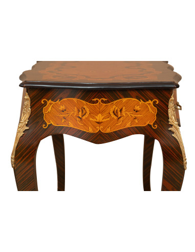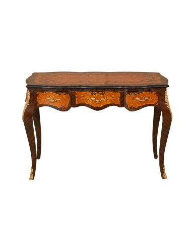 Biurko o najwyższym kunszcie wykonania o wymiarach 122 cm długości, 60 cm głębokości i 81 cm wysokości, prawdziwy wyraz kunsztu osiągalnego tylko przez kilku mistrzów warsztatu. Prawdziwe arcydzieło, którego struktura jest wzbogacona o precyzyjne inkrustacje precyzyjnie zmontowane w celu uzyskania ponadczasowej przyjemnej geometrii. Funkcjonalny przedmiot, który reprezentuje mebel zdolny do przeciwstawienia się czasowi, zachowując swój urok bez zmian.