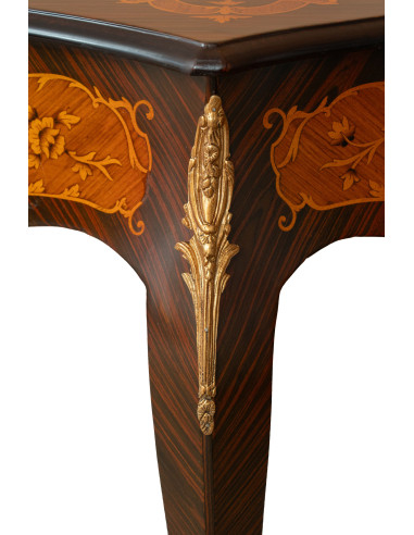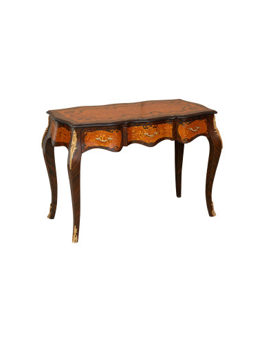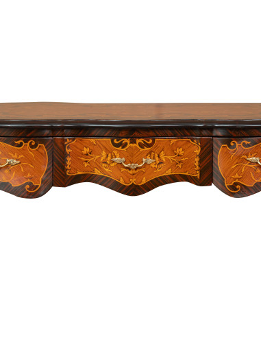 Biurko wykończone drewnem orzechowym fornirowanym wzbogacone specjalnymi ręcznie wykonanymi inkrustacjami