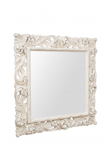 DREWNIANE LUSTRO ŚCIENNE Z ANTYCZNYM BIAŁYM WYKOŃCZENIEM WYKONANE WE WŁOSZECH