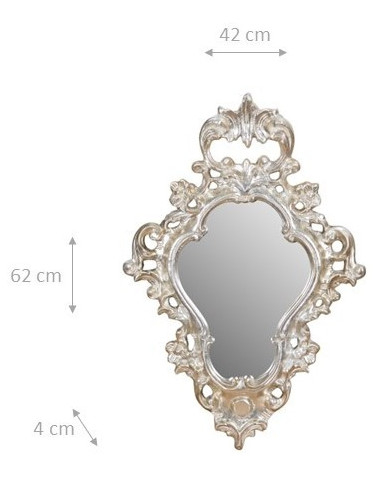 LUSTRO ŚCIENNE DREWNIANE WYKOŃCZENIE ANTYCZNY SREBRNY LIŚĆ L42xPR4xH62cm Wyprodukowano we Włoszech