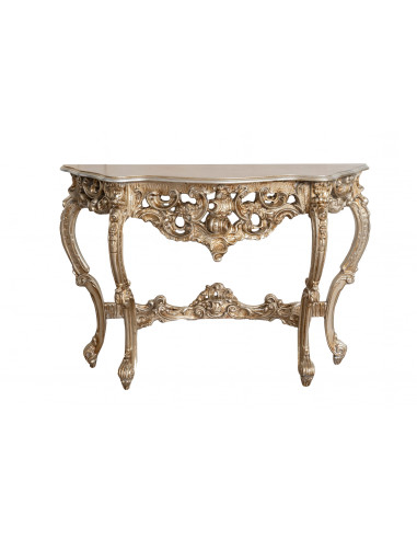 DREWNIANY STOLIK KONSOLOWY SREBRNY LIŚĆ ANTYKOWANY MADE IN ITALY