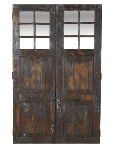 Starożytne drzwi/brama z litego drewna tekowego o wymiarach: długość 128 cm, głębokość 4 cm, wysokość 206 cm. Drzwi te pochodzą z rozbiórek i renowacji starych, ważnych budynków. Starannie odrestaurowane i przystosowane również do użytku na zewnątrz, każde drzwi są prawdziwym i niepowtarzalnym zabytkiem. Wszystkie wymiary odnoszą się do maksymalnych gabarytów produktu.