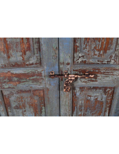 Starożytne drzwi/brama z litego drewna tekowego o wymiarach: długość 131 cm, głębokość 10 cm, wysokość 207 cm. Drzwi te pochodzą z rozbiórek i renowacji starych, ważnych budynków. Starannie odrestaurowane i przystosowane również do użytku na zewnątrz, każde drzwi są prawdziwym i niepowtarzalnym zabytkiem. Wszystkie wymiary odnoszą się do maksymalnych gabarytów produktu.