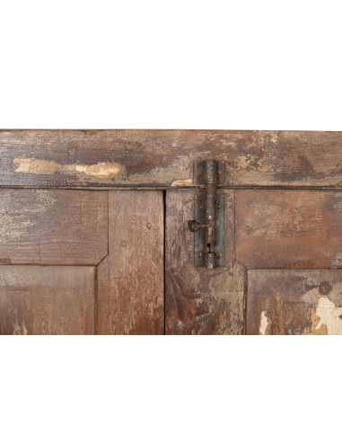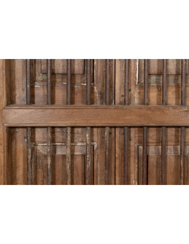 Drzwi z kratą okienną z litego drewna i antycznego żelaza z ramą wewnętrzną lub zewnętrzną