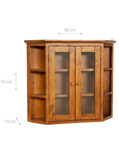Ząbkowana gablota do powieszenia w wykończeniu z litego drewna lipowego L86xPR21xH75 cm. Wyprodukowano we Włoszech