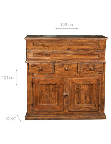 Kredens w ca?o?ci wykonany z litego drewna lipowego o wymiarach L100xPR55xH101 cm ma górny górny i przedni bok, który mo?na z?o?y?, ods?aniaj?c du?? komor? wewn?trz, u?ywan? w przesz?o?ci do mieszania lub przechowywania ?ywno?ci. Jest równie? wyposa?ony w trzy praktyczne szuflady i du?? komor? z dwojgiem drzwi. Wykonany we W?oszech, zgodnie ze staro?ytnymi technikami stolarstwa rzemie?lniczego, pozwoli ci zanurzy? si? w przesz?o?ci.