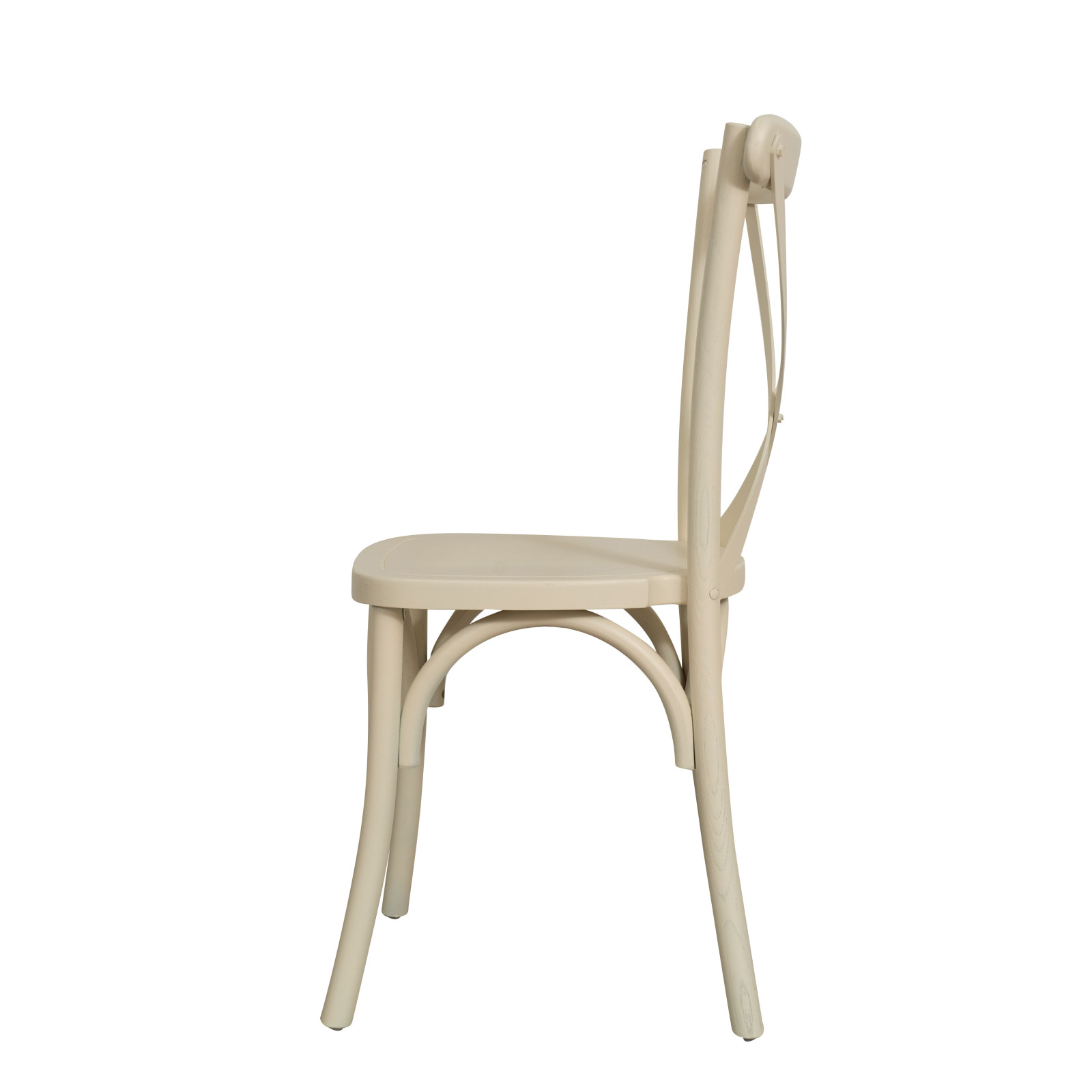 Krzesło o wymiarach szerokość 42 cm, głębokość 43 cm, wysokość 88 cm w stylu Thonet wykonane z litego jesionu ze skrzyżowanym oparciem. Dzięki designowi bistro idealnie nadaje się do wyposażenia każdego pokoju lub lokalu w stylu vintage, bez utraty komfortu. Wysokość od podłogi do siedziska wynosi 45 cm.