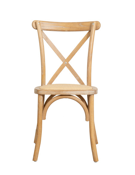 Krzesło o wymiarach szerokość 42 cm, głębokość 44 cm, wysokość 88 cm w stylu Thonet wykonane z litego jesionu ze skrzyżowanym oparciem. Dzięki designowi bistro idealnie nadaje się do wyposażenia każdego pokoju lub lokalu w stylu vintage, bez utraty komfortu. Wysokość od podłogi do siedziska wynosi 46 cm.