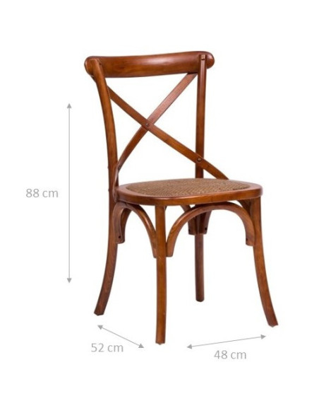 Krzesło Thonet Cross z litego drewna i siedziskiem z rattanu w wykończeniu orzechowym