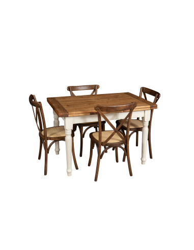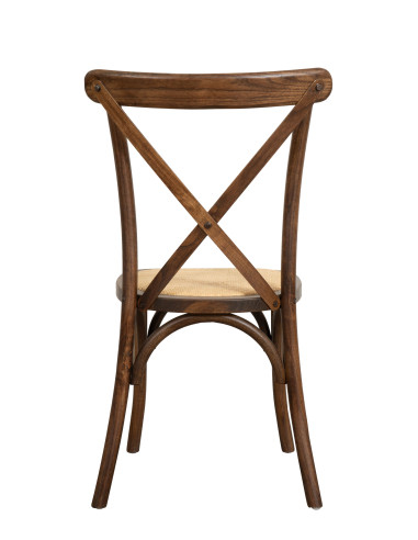 Krzesło o wymiarach szerokość 42 cm, głębokość 44 cm, wysokość 88 cm w stylu Thonet wykonane z litego jesionu ze skrzyżowanym oparciem. Dzięki designowi bistro idealnie nadaje się do wyposażenia każdego pokoju lub lokalu w stylu vintage, bez utraty komfortu. Wysokość od podłogi do siedziska wynosi 46 cm.