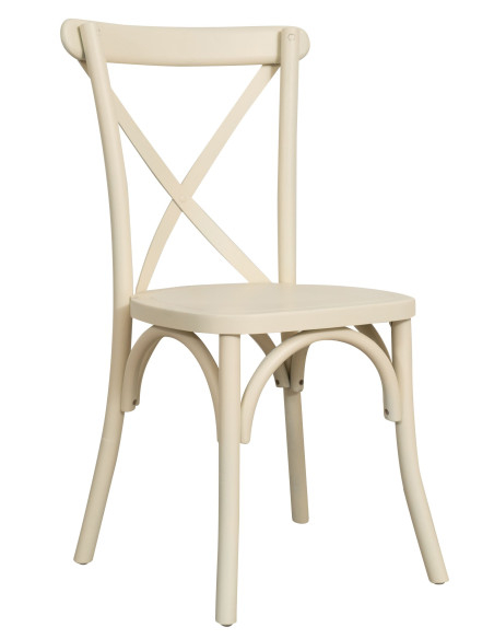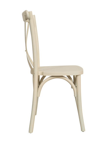 Krzesło o wymiarach szerokość 42 cm, głębokość 43 cm, wysokość 88 cm w stylu Thonet wykonane z litego jesionu ze skrzyżowanym oparciem. Dzięki designowi bistro idealnie nadaje się do wyposażenia każdego pokoju lub lokalu w stylu vintage, bez utraty komfortu. Wysokość od podłogi do siedziska wynosi 45 cm.