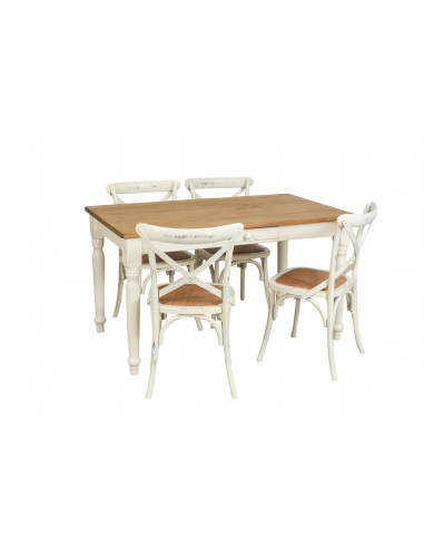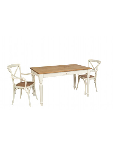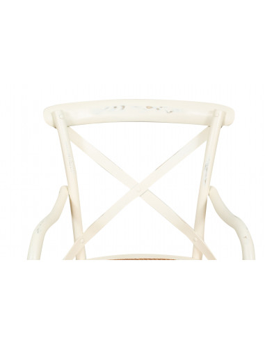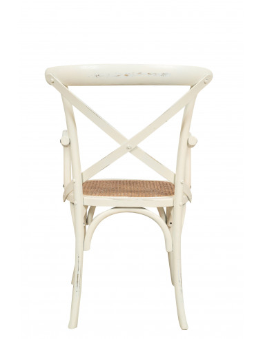 Krzesło z podłokietnikami L50xPR43xH89 cm w stylu Thonet wykonane z litego jesionu z krzyżowym oparciem i ręcznie wykonanym siedziskiem z wiedeńskiej słomy. Dzięki swojemu designowi bistrot jest idealny do wyposażenia w stylu vintage każdego otoczenia lub pomieszczenia, bez rezygnacji z komfortu.