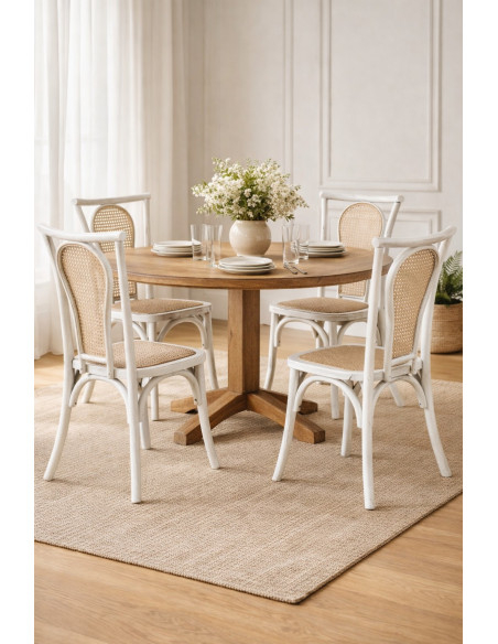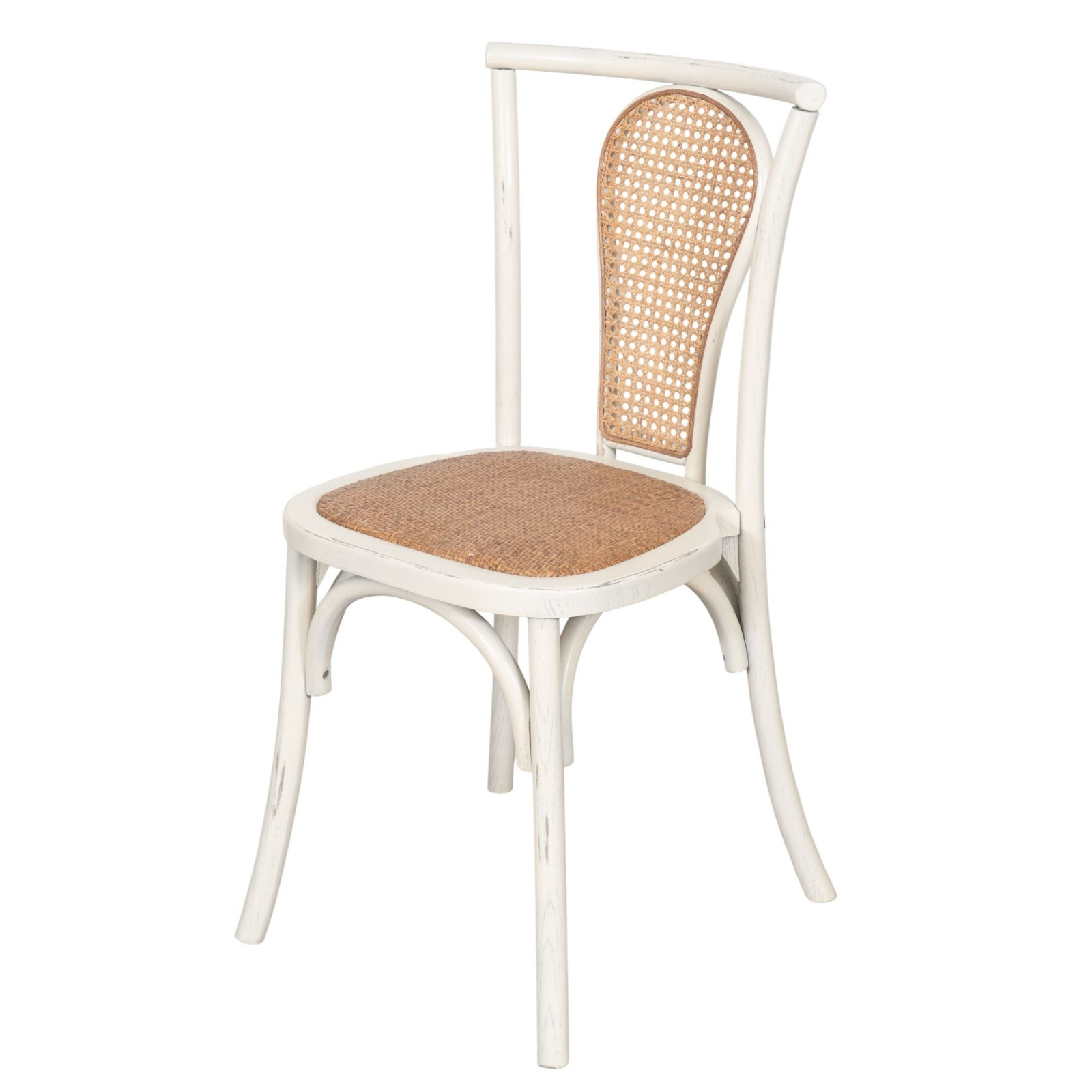 Krzesło z litego drewna i oparciem z wiedeńskiej słomy, wykończenie w kolorze postarzanego bieli
