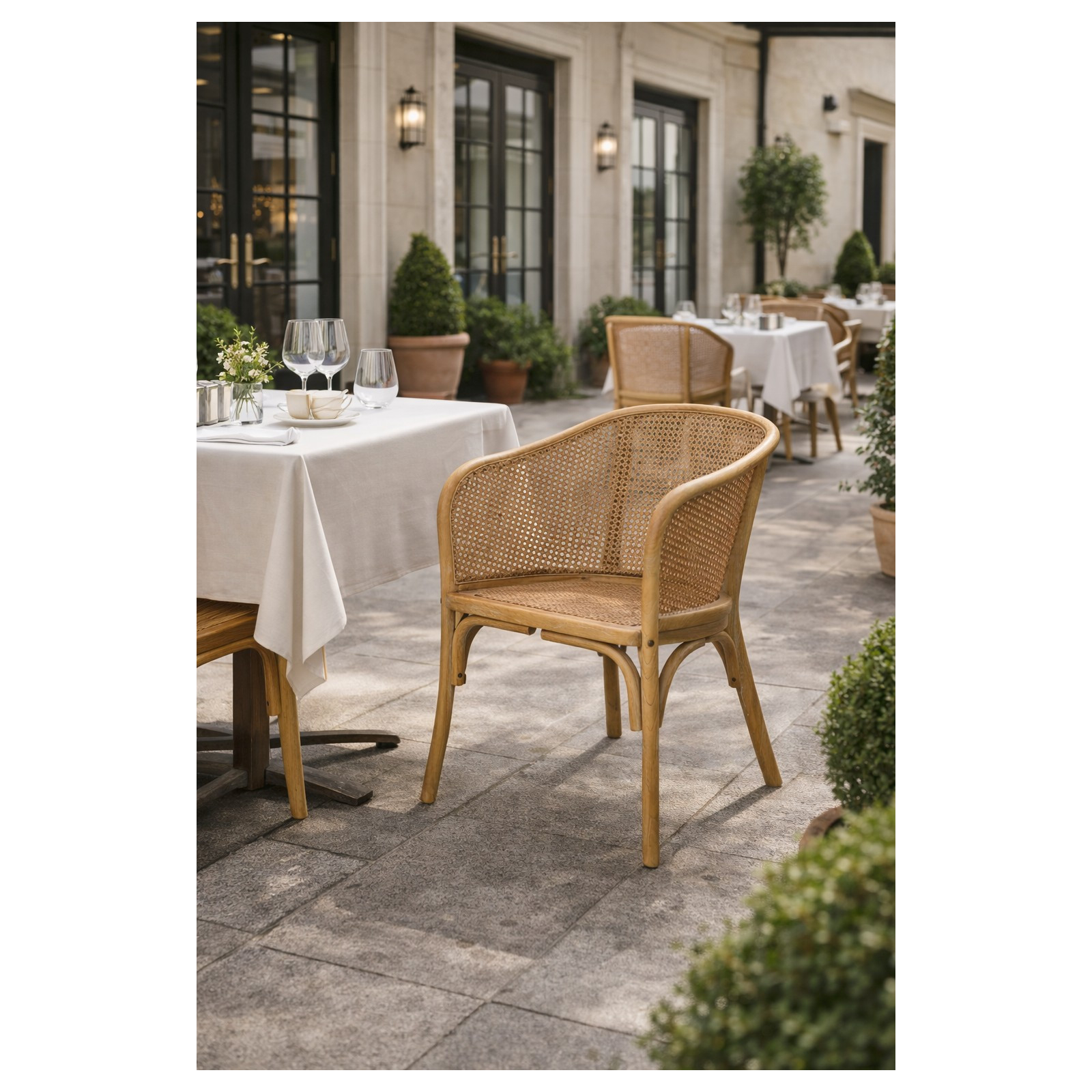 Krzesło z litego drewna i siedzisko z rattanu w kolorze jasnego orzecha