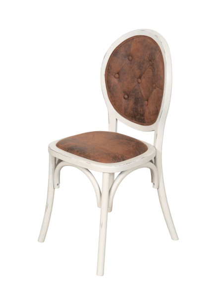 Krzesło z litego drewna i tapicerowanym siedziskiem, wykończenie w kolorze postarzanego bieli