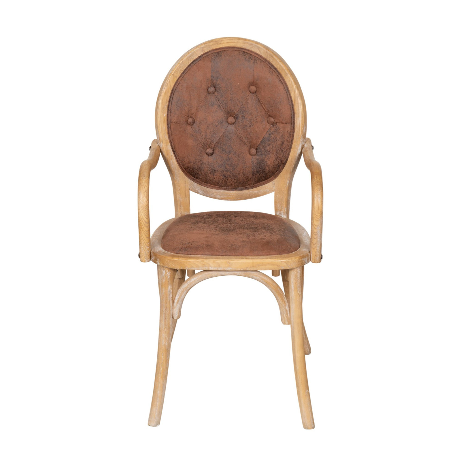 Krzesło z podłokietnikami z litego drewna i wyściełanym siedziskiem w kolorze jasnego orzecha