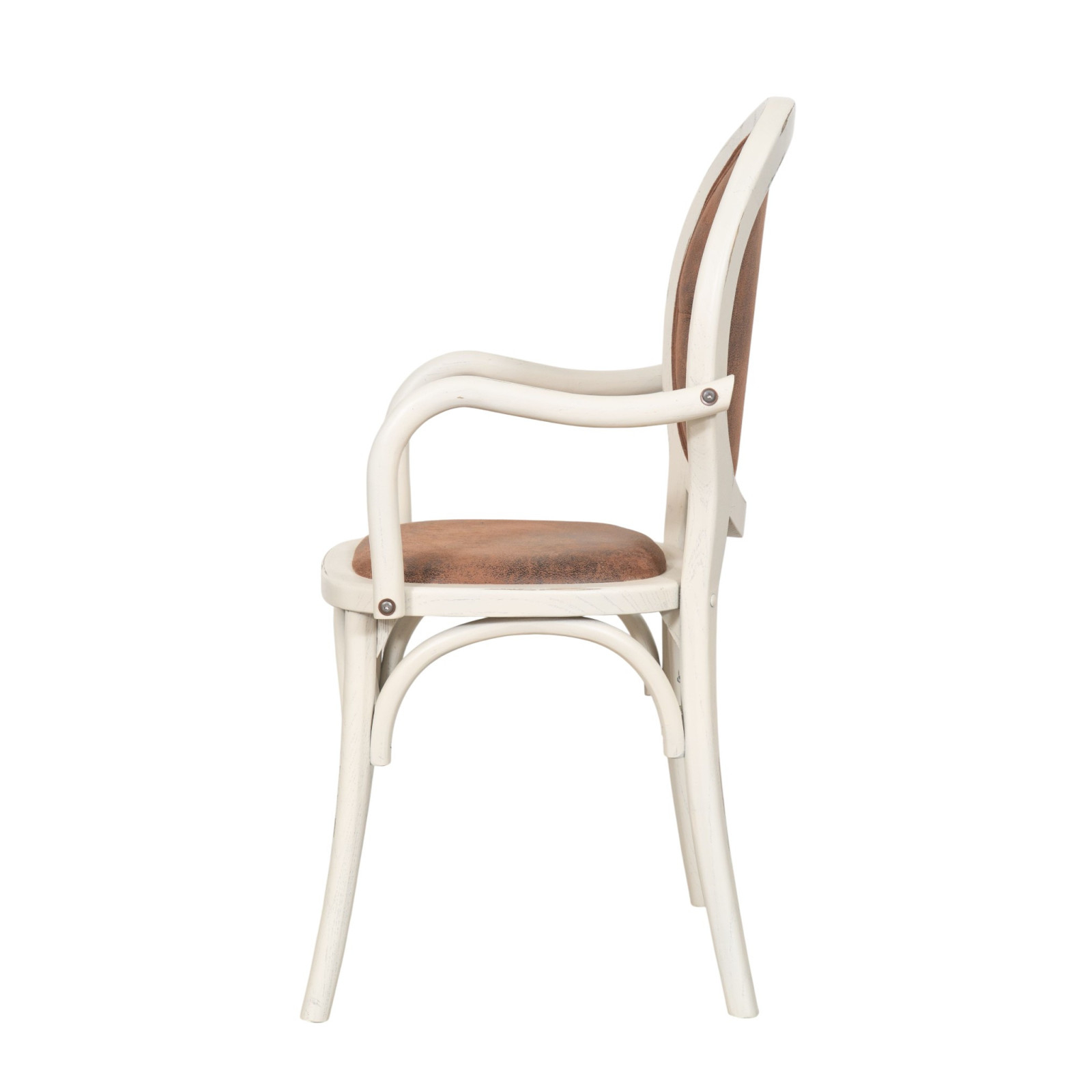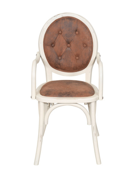 Krzesło z podłokietnikami z litego drewna i wyściełanym siedziskiem w wykończeniu w kolorze antycznej bieli