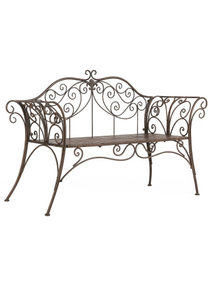 Ławki wykonane z żelaza o wymiarach: szerokość 133 cm, głębokość 49 cm, wysokość 90 cm, wykończenie w kolorze postarzanego brązu. Dzięki prowansalskiemu stylowi nadają one funkcjonalnej elegancji każdemu pomieszczeniu, zarówno wewnątrz, jak i na zewnątrz.