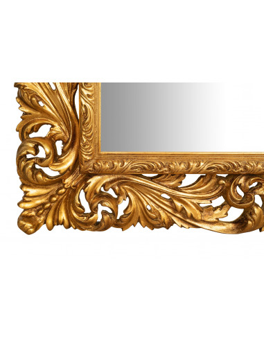 LUSTRO ŚCIENNE WE WYKOŃCZENIU DREWNA ANTYWIDOWANY ZŁOTY LIŚĆ WYKONANY WE WŁOSZECH