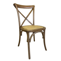 Krzesło o szerokości 48 cm, głębokości 52 cm, wysokości 88 cm w stylu Thoneta, wykonane z litego jesionu, ze skrzyżowanym oparciem i siedziskiem z tkanego włókna rattanowego. Dzięki swojej konstrukcji bistro idealnie nadaje się do dekoracji każdego otoczenia lub pomieszczenia w stylu vintage, bez utraty komfortu.Wszystkie wymiary odnoszą się do...