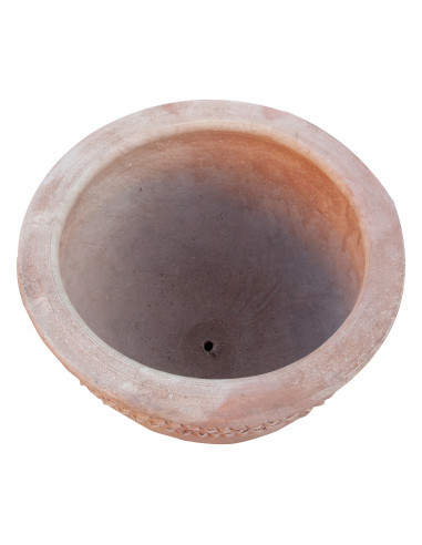 R?cznie robiony i opalany drewnem wazon jak w staro?ytno?ci o wymiarach d?ugo?ci 65 cm, g??boko?ci 65 cm, wysoko?ci 55 cm. Mo?e by? równie? stosowany jako zewn?trzny s?oik na ro?liny i kwiaty lub jako dekoracyjna amfora do wn?trz. Pierwotnie u?ywany jako kontenery daty. W?ród rzemie?lniczych tradycji Maroka znacz?ce miejsce zajmuje produkcja waz terakotowych i amfor. Metody przetwarzania s? przekazywane z pokolenia na pokolenie i zosta?y zachowane na przestrzeni wieków. Ka?dy przedmiot jest r?cznie robiony, ró?ni si? rozmiarem i odcieniem koloru.