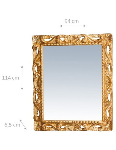 Lustro ścienne pionowe / poziome z drewna z wykończeniem w kolorze antycznego złota L94xPR6,5xH114 cm Wyprodukowano we Włoszech