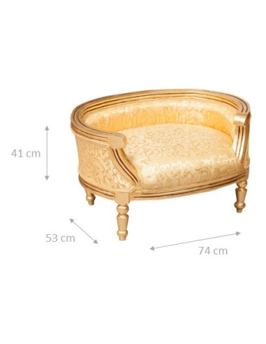 Puf w stylu Ludwika XVI z oparciem z litego drewna bukowego w kolorze złotym