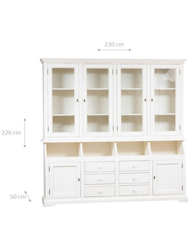Regał wiejski z litego drewna lipowego z antycznym białym wykończeniem L230xPR50xH226 cm. Wyprodukowano we Włoszech