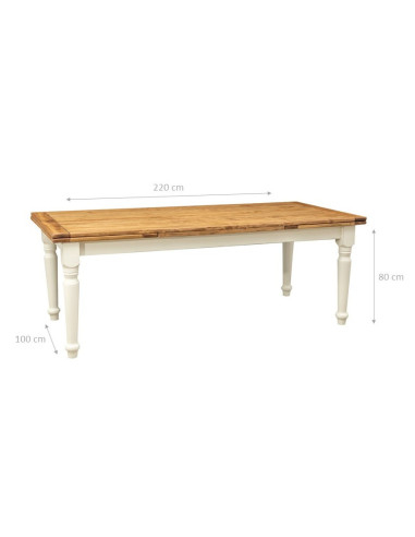 Prostok?tny stó? L220xPR100xH80 cm z litego drewna lipowego z mo?liwo?ci? przed?u?enia do 275 lub 330 cm dzi?ki dwóm praktycznym przed?u?eniom po 55 cm ka?dy. Idealny do uzupe?nienia ka?dego pokoju odrobin? uroku Country, gwarantuje solidno?? i jako?? dzi?ki niepowtarzalnemu i skrupulatnemu kunsztowi Made in Italy.