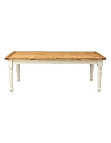 Stół rozkładany z litego drewna lipowego o starzejącej się białej strukturze i naturalnym blacie L220xPR100xH80 cm. Wyprodukowan