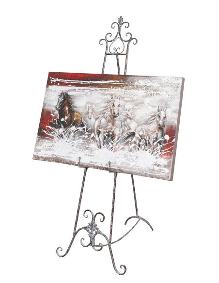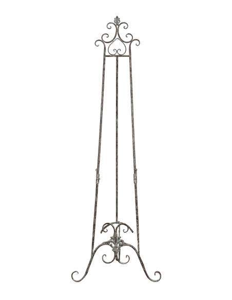 Elegancka, praktyczna i stabilna sztaluga trójnóg do obrazów L53xDP96xH150 cm wykonana z kutego żelaza. Z dbałością o najdrobniejsze szczegóły, dzięki swojej uniwersalności idealnie nadaje się również jako stojak na menu czy na wystawy, witryny sklepowe, galerie.