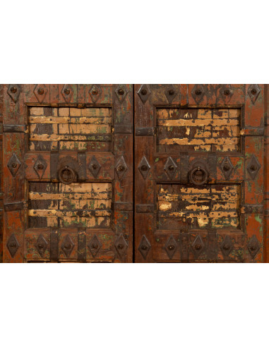 Wewnętrzne lub zewnętrzne średniowieczne drzwi przesuwne z litego drewna i żelaza