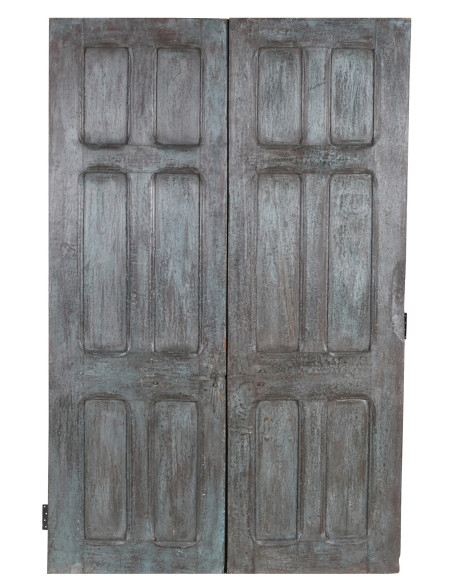Starożytne drzwi/brama z litego drewna tekowego o wymiarach: długość 132 cm, głębokość 5 cm, wysokość 208 cm. Drzwi te pochodzą z rozbiórek i renowacji starych, ważnych budynków. Starannie odrestaurowane i przystosowane również do użytku na zewnątrz, każde drzwi są prawdziwym i niepowtarzalnym zabytkiem. Wszystkie wymiary odnoszą się do maksymalnych gabarytów produktu.