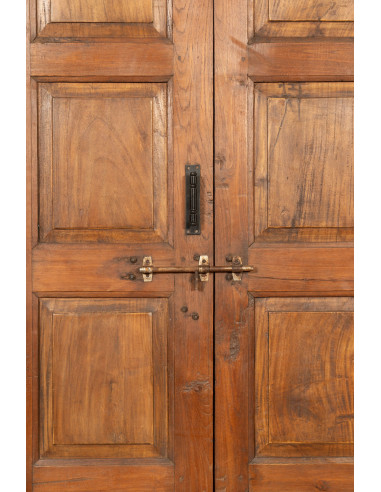 Drzwi z litego drewna tekowego/antyczne drzwi o długości 132 cm, głębokości 15 cm i wysokości 242 cm. Te drzwi pochodzą z rozbiórki i renowacji ważnych starych budynków. Precyzyjnie odrestaurowane i przystosowane do użytku na zewnątrz, każde drzwi są prawdziwym i unikalnym antykiem. Wszystkie wymiary odnoszą się do maksymalnych całkowitych wymiarów artykułu.