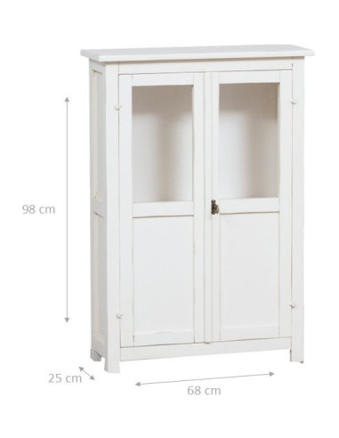 Gablota wiejska z litego drewna lipowego z antycznym białym wykończeniem L68xPR25xH98 cm Wyprodukowano we Włoszech