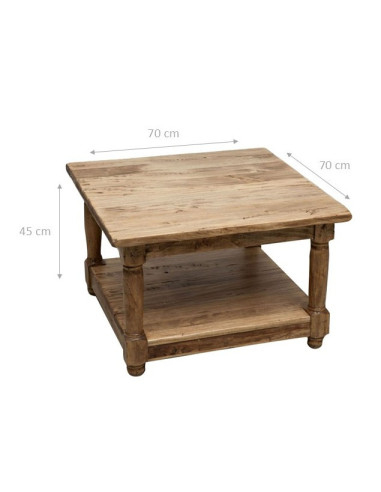 Wiejski stolik kawowy z litego drewna lipowego, naturalne wykończenie L70xPR70xH45 cm. Wyprodukowano we Włoszech