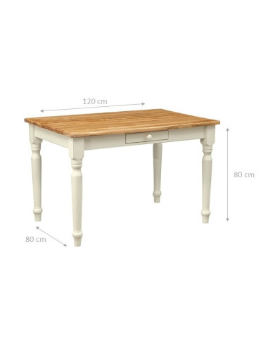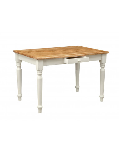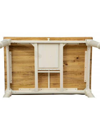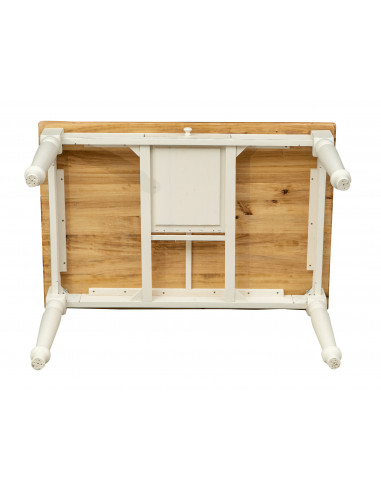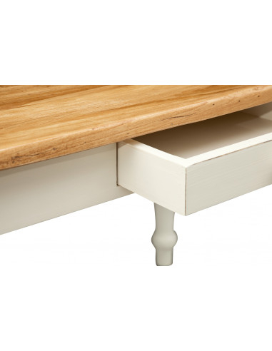 Biurko z litego drewna lipowego o starzejącej się białej strukturze i naturalnym blacie. Wyprodukowano we Włoszech