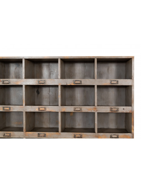 Imponująca i przestronna komoda składająca się z trzech bloków o wymiarach całkowitych L150xPR34x205 cm, wykonana z litego drewna dębowego, posiada aż 12 podwójnych szklanych drzwi. Dzięki wielu półkom może służyć jako regał lub witryna, nadając każdemu pomieszczeniu styl rustykalny.