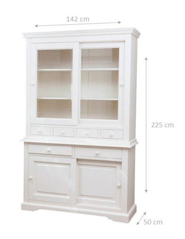 Lado largura 142 cm, profundidade 50 cm, altura 225 cm feito de madeira de cal sólida. Está equipado com duas prateleiras fechadas com portas deslizantes e duas gavetas práticas na parte inferior e uma grande janela com três prateleiras de portas deslizantes e quatro gavetas na parte superior. Botões de madeira e gavetas feitas com recessos de cauda de andorinha são peculiaridades desta crença artesanalmente produzida Made in Italy que garante o cuidado dos menores detalhes. Ideal, graças ao seu estilo Country, para fornecer com funcionalidade majestosa qualquer ambiente.