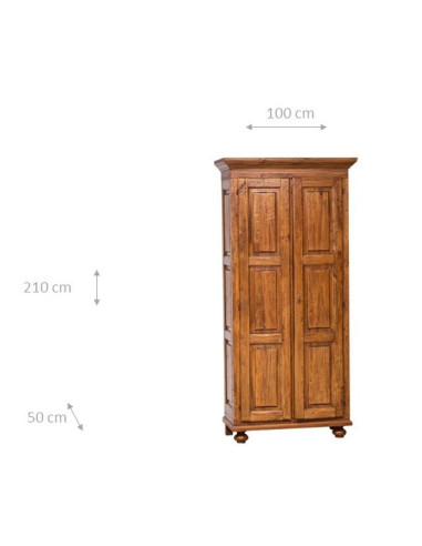 Armário country em madeira maciça de cal, acabamento em nogueira L100xDP50xA210 cm. Feito na Itália