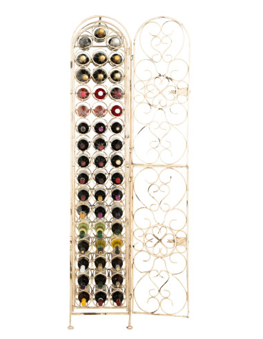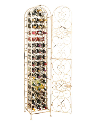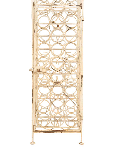Armário de adega em ferro forjado maciço com acabamento branco antigo