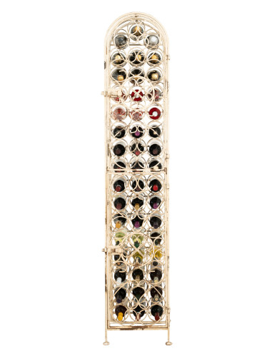 Porta-garrafas com dimensões largura 37 cm, profundidade 37, altura 190 cm em ferro forjado maciço, feito à mão, muito resistente e pesado. Com capacidade para garrafas, o porta-vinhos representa um móvel funcional e prático para ambientes importantes. Graças ao material sólido e aos quatro pés na base, o porta-garrafas é muito estável. Ideal para ambientes privados, mas também para caves, bares, restaurantes, pizzarias, quintas, trattorias, tabernas, hotéis, pubs, recepções, salas de jogos, discotecas, lojas, centros de bem-estar, salas de espera, escritórios, salas de reuniões, estudos profissionais. Todas as medidas referem-se ao tamanho máximo do item.